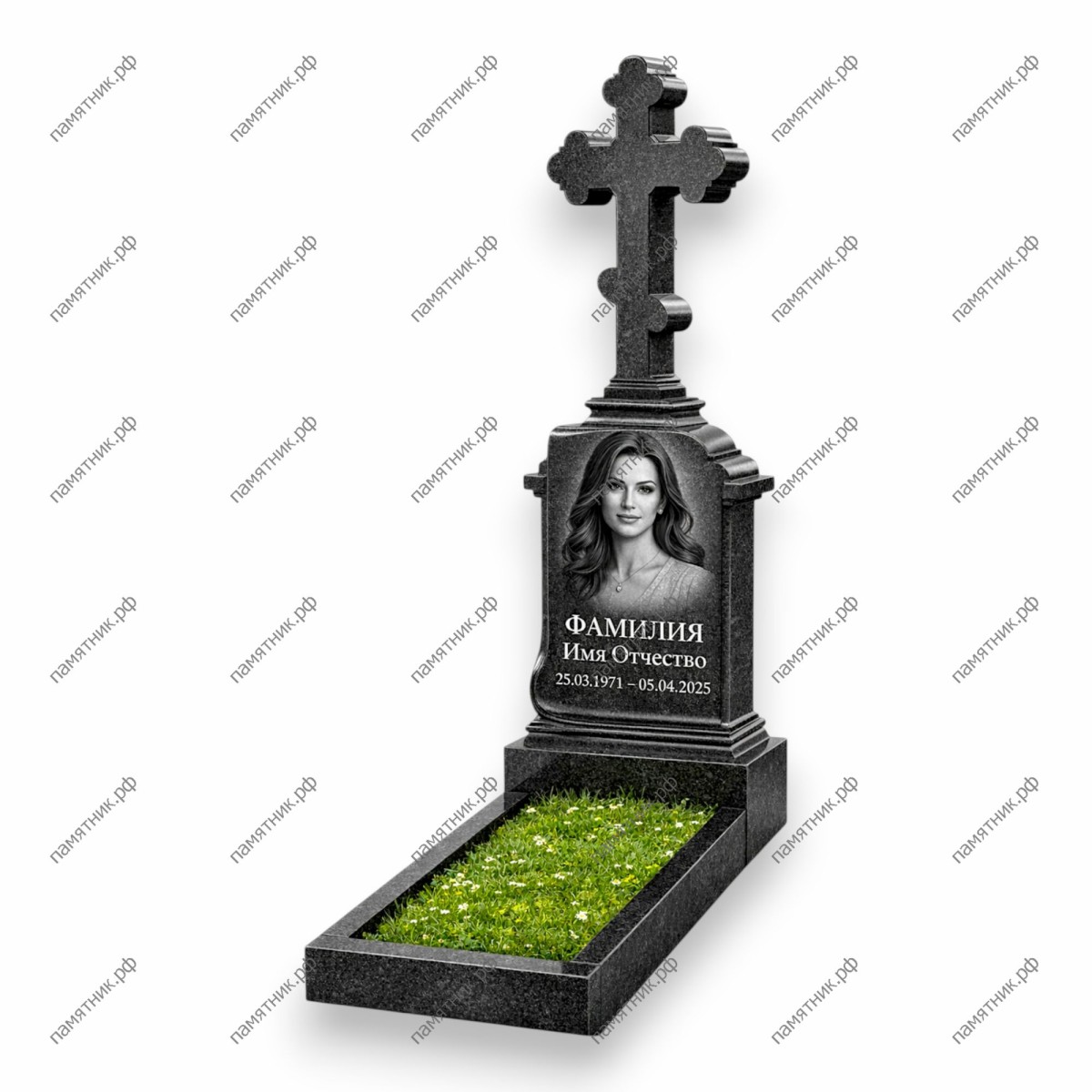 Уникальная модель с массивным фигурным крестом-трилистником. Сама стела имеет сложный рельеф: ее боковые грани оформлены в виде объемных ступенчатых уступов. Богатое резное оформление креста и нестандартная форма стелы делают этот памятник по-настоящему эксклюзивным произведением мемориального искусства.