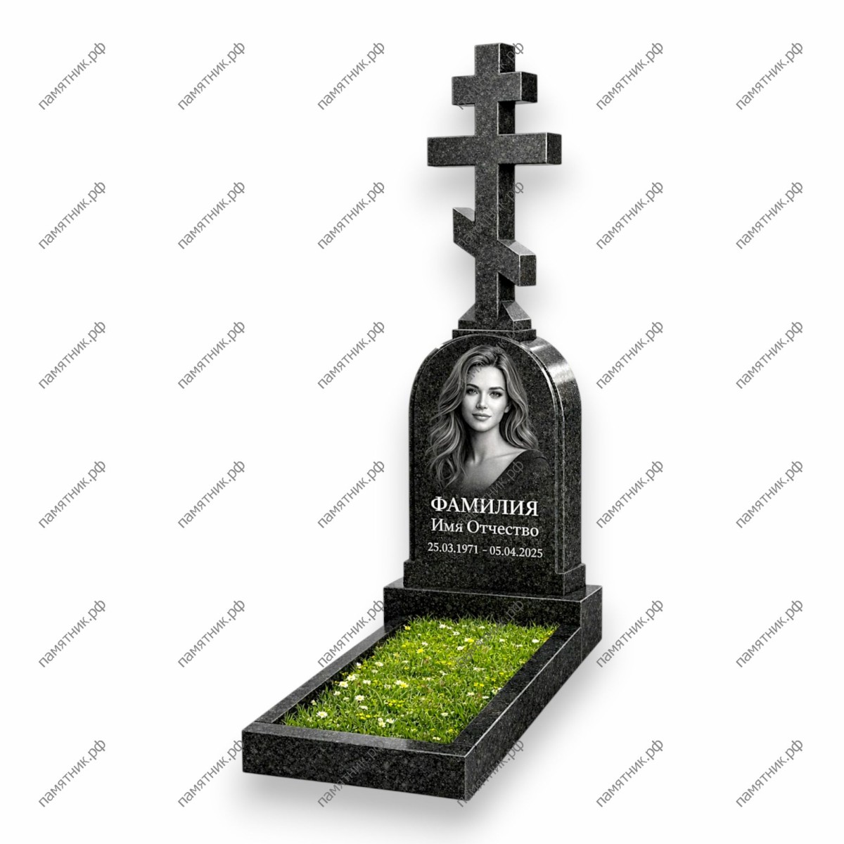 Элегантная классическая модель с гармоничным полукруглым арочным завершением. Плавная дуга верха стелы символизирует небесный свод и умиротворение. На аккуратном постаменте возвышается массивный и строгий восьмиконечный православный крест с прямыми гранями. Отсутствие лишних деталей концентрирует все внимание на светлой памяти и гравировке портрета.
