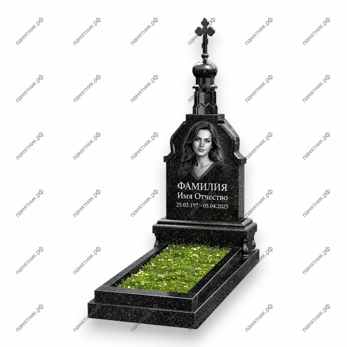 Резная модель с плавными, округлыми плечиками и многоуровневым основанием под купол. Форма стелы напоминает силуэт православного храма. Идеально отполированная поверхность устойчива к суровым погодным условиям.