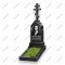 Архитектурная модель с красивым ступенчато-арочным завершением. Верхняя часть стелы оформлена в виде сложного храмового свода (кокошника), внутри которого располагается портрет. На вершине этого гранитного купола установлен классический православный восьмиконечный крест. Богатый контур стелы придает памятнику объем и статусность.