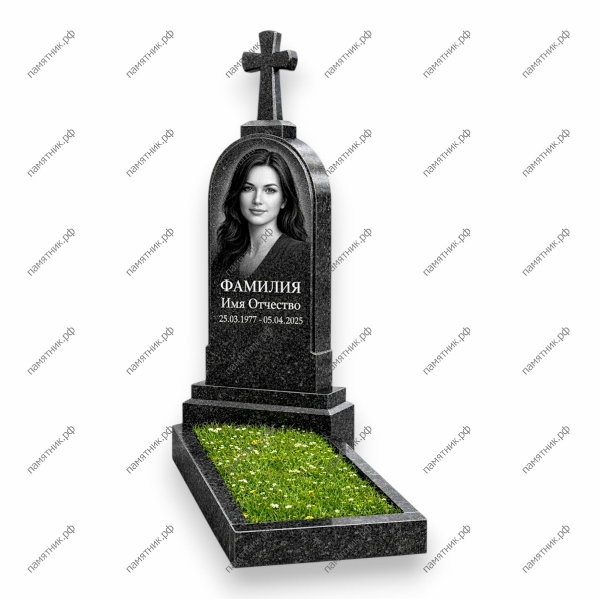 Классическая, вытянутая арочная стела с лаконичным завершением. Главным отличием этой модели является использование четырехконечного (латинского) креста с фигурными окончаниями-трилистниками. Сдержанная геометрия памятника оставляет максимальное пространство на камне для крупного, детального портрета и красивого оформления эпитафии.