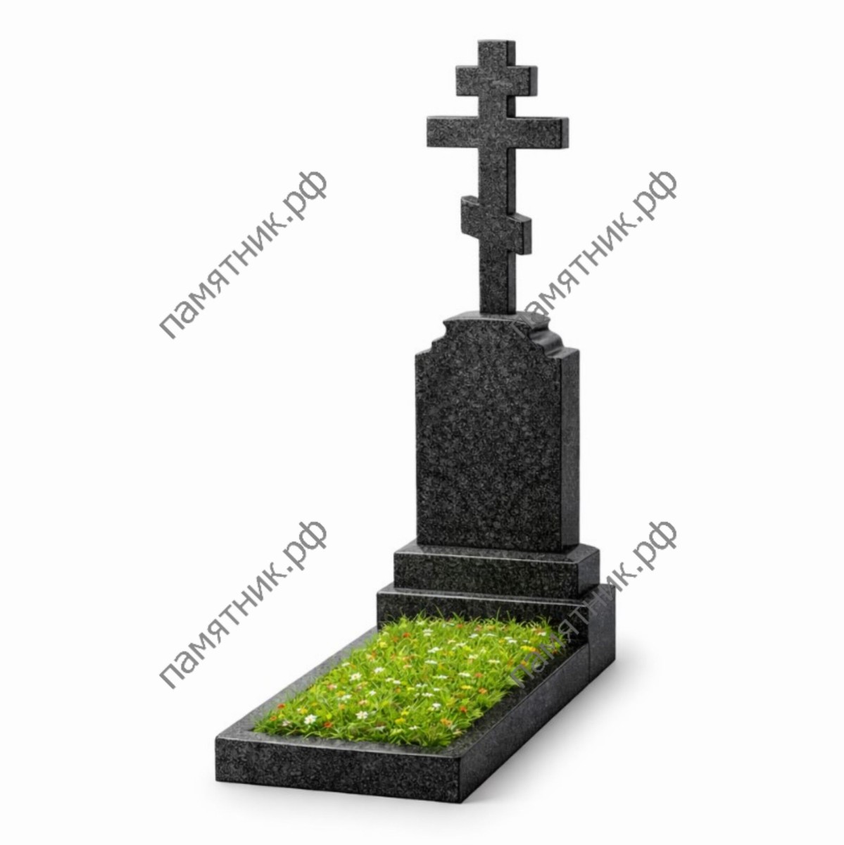 Сдержанная и благородная классика, предназначенная для лаконичного текстового оформления (или установки керамики). Прямоугольная стела имеет традиционный арочный верх со ступенчатыми плечиками. Глубокий черный цвет гладко отполированного Габбро-диабаза и строгий православный крест на вершине создают умиротворенный и солидный образ.