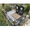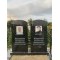- Надгробная композиция: У основания стел установлена общая массивная тумба. К ней примыкает широкий прямоугольный цветник открытого типа, собранный из полированных гранитных балок. Внутренняя часть цветника подготовлена под высадку живых растений или декоративную засыпку мраморной крошкой.
