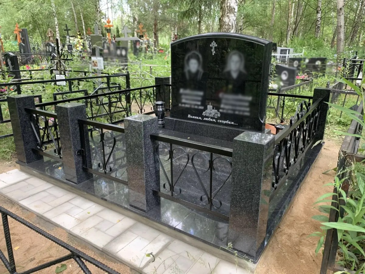 Благородный семейный мемориал со сплошным гранитным мощением и комбинированной оградой