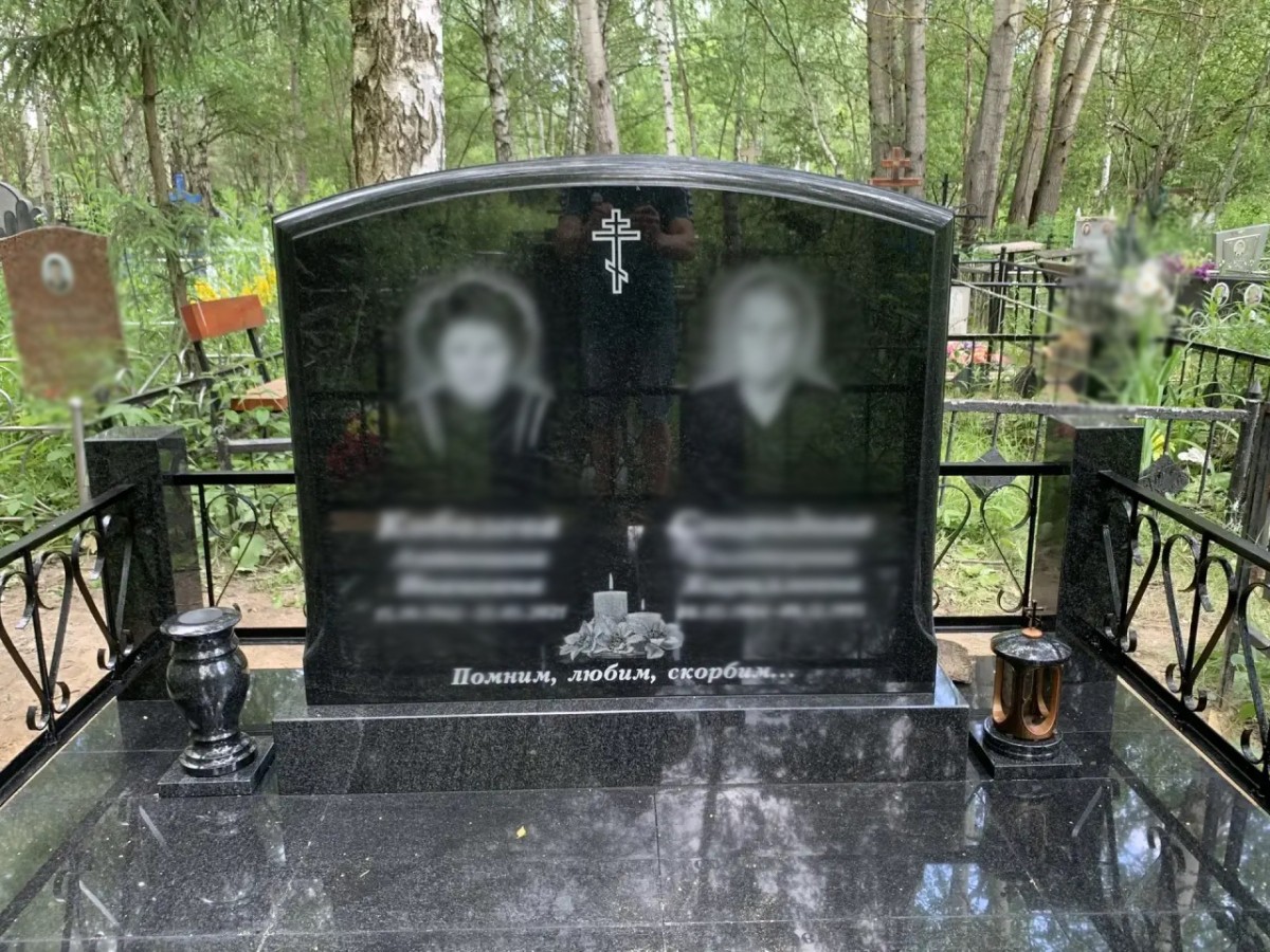 - Нижняя часть стелы отведена под ФИО, даты жизни и общую объединяющую эпитафию («Помним, любим, скорбим...»).