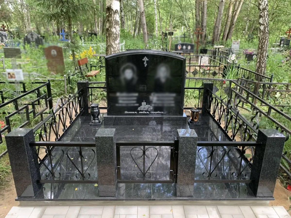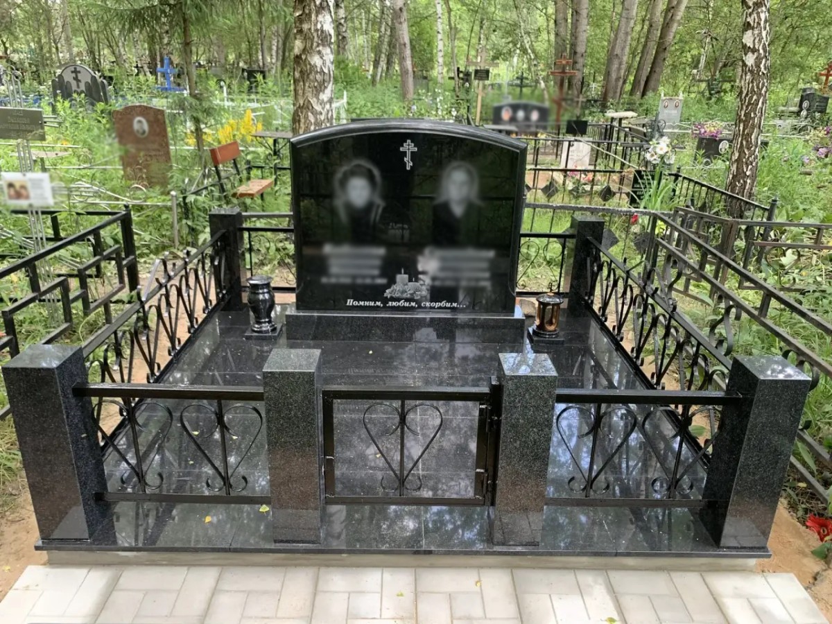 Главная особенность комплекса — полная облицовка участка полированным камнем, что в сочетании с изящным ограждением создает образ ухоженности, торжественности и вечной памяти. Такая конструкция максимально практична и сохраняет первозданный вид без трудоемкого сезонного ухода.
