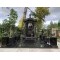 - По периметру установлен массивный гранитный цоколь. В качестве ограждения выступают гранитные столбики, увенчанные декоративными точеными шарами, соединенные сплошными гранитными перемычками.