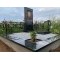 Архитектурно выверенный и лаконичный мемориальный ансамбль, выполненный в стиле современного минимализма. В основе проекта лежит использование премиального черного гранита (Габбро-диабаза) с зеркальной полировкой, которая эффектно контрастирует с фактурным мощением и живой зеленью.