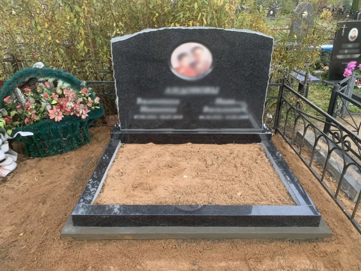 Выразительный и глубоко символичный семейный мемориал, дизайн которого построен на контрасте идеально гладкой поверхности и первозданной дикой природы. Памятник выполнен из прочного черного карельского гранита (габбро-диабаза) в горизонтальной ориентации, что делает его идеальным решением для двойного захоронения.