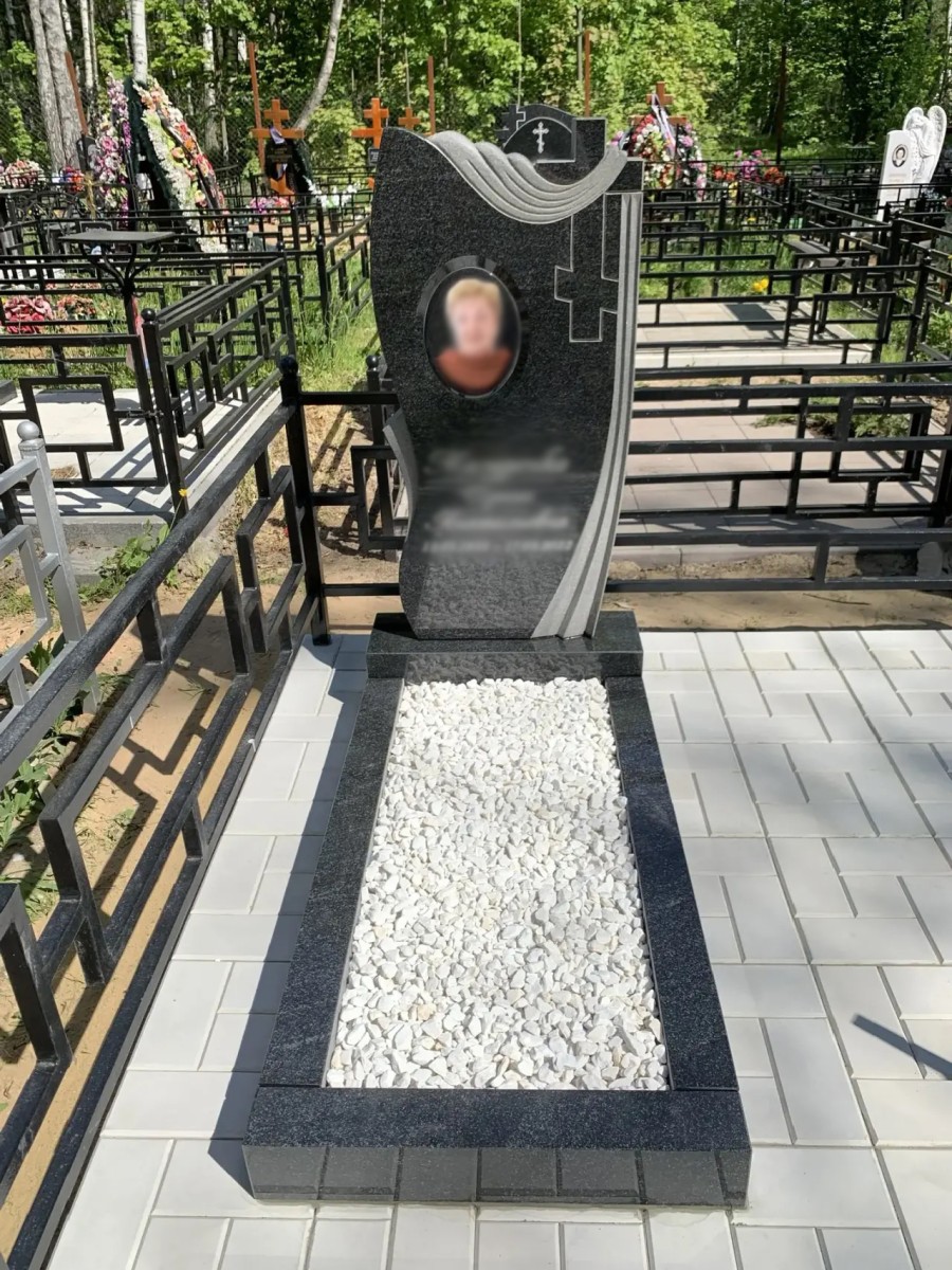 Изящный и глубоко символичный мемориал, сочетающий в себе классическую резьбу по камню и современные стандарты благоустройства. Памятник выполнен из премиального карельского Габбро-диабаза, чья зеркально-черная поверхность служит идеальным фоном для светлых резных элементов и белоснежного декора.
