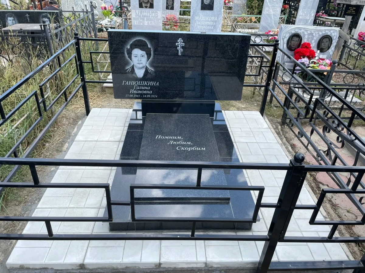 - Эпитафия: Текст «Помним, Любим, Скорбим» нанесен классическим академическим шрифтом с глубоким контрастом, что делает его читаемым с любого расстояния.