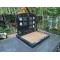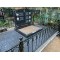- Художественное ограждение: Участок обрамлен металлической оградой из витых прутьев с элементами ковки (волютами). Покрытие черной краской с благородной золотой патиной придает ограде антикварный вид и идеально сочетается с полированным черным гранитом.