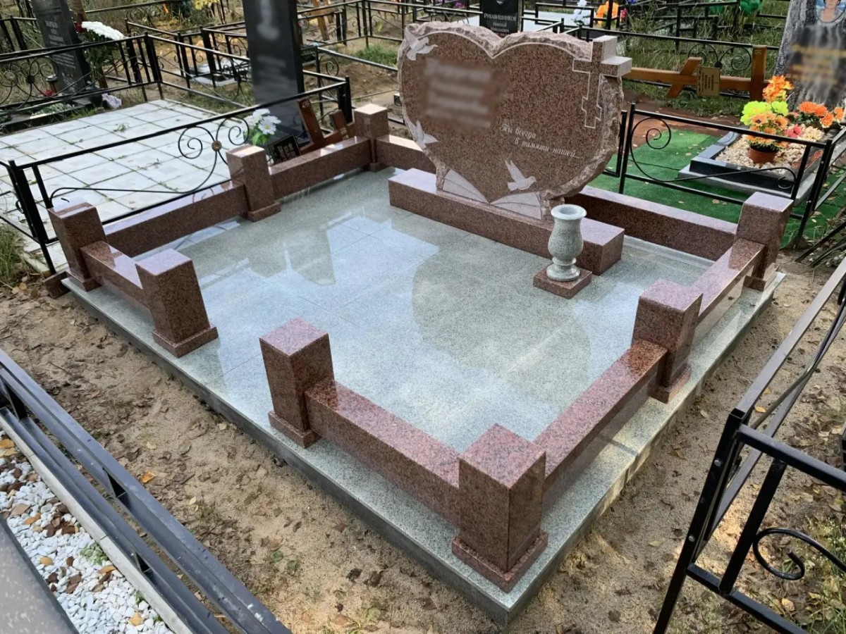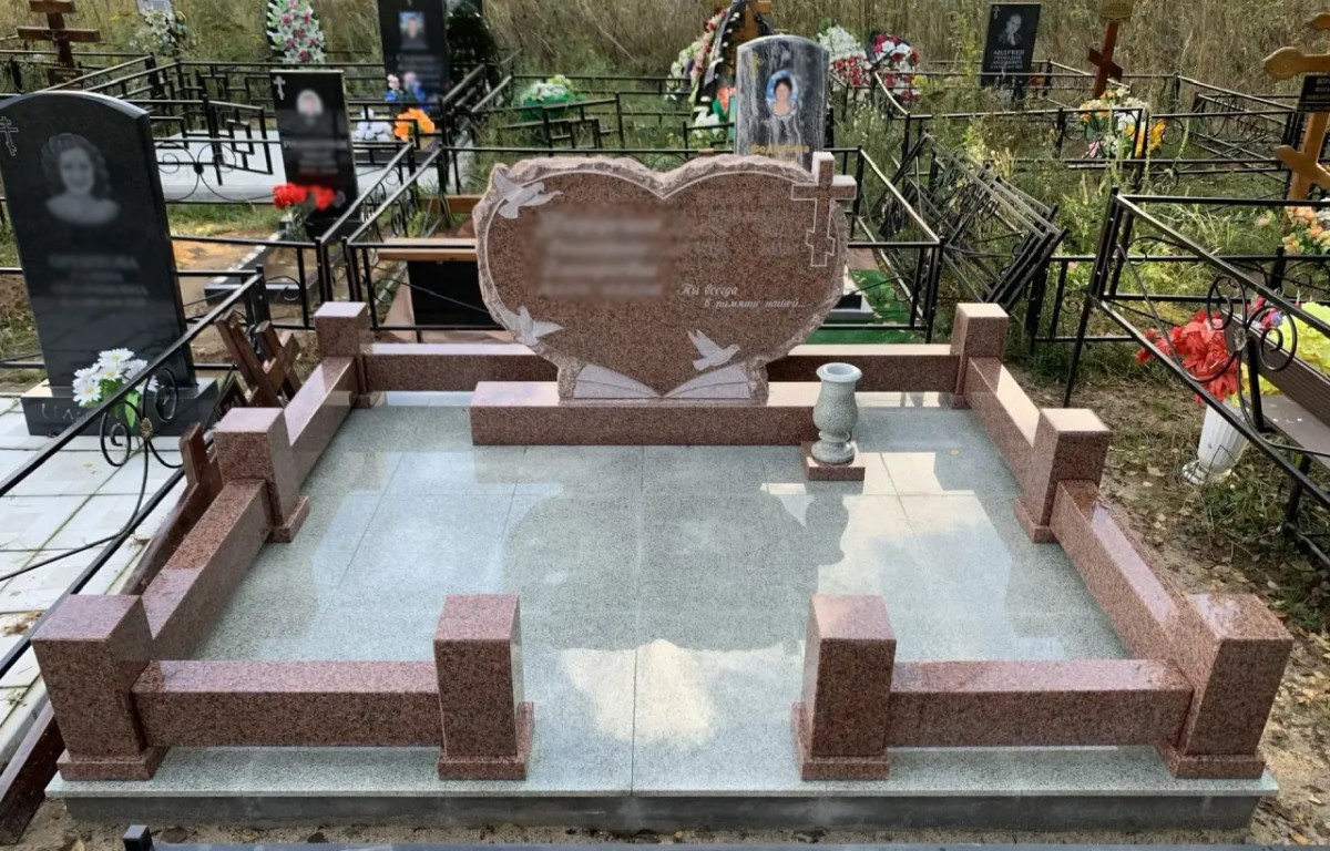 Романтичный мемориальный комплекс «Сердце» с резными голубями и сплошным мощением