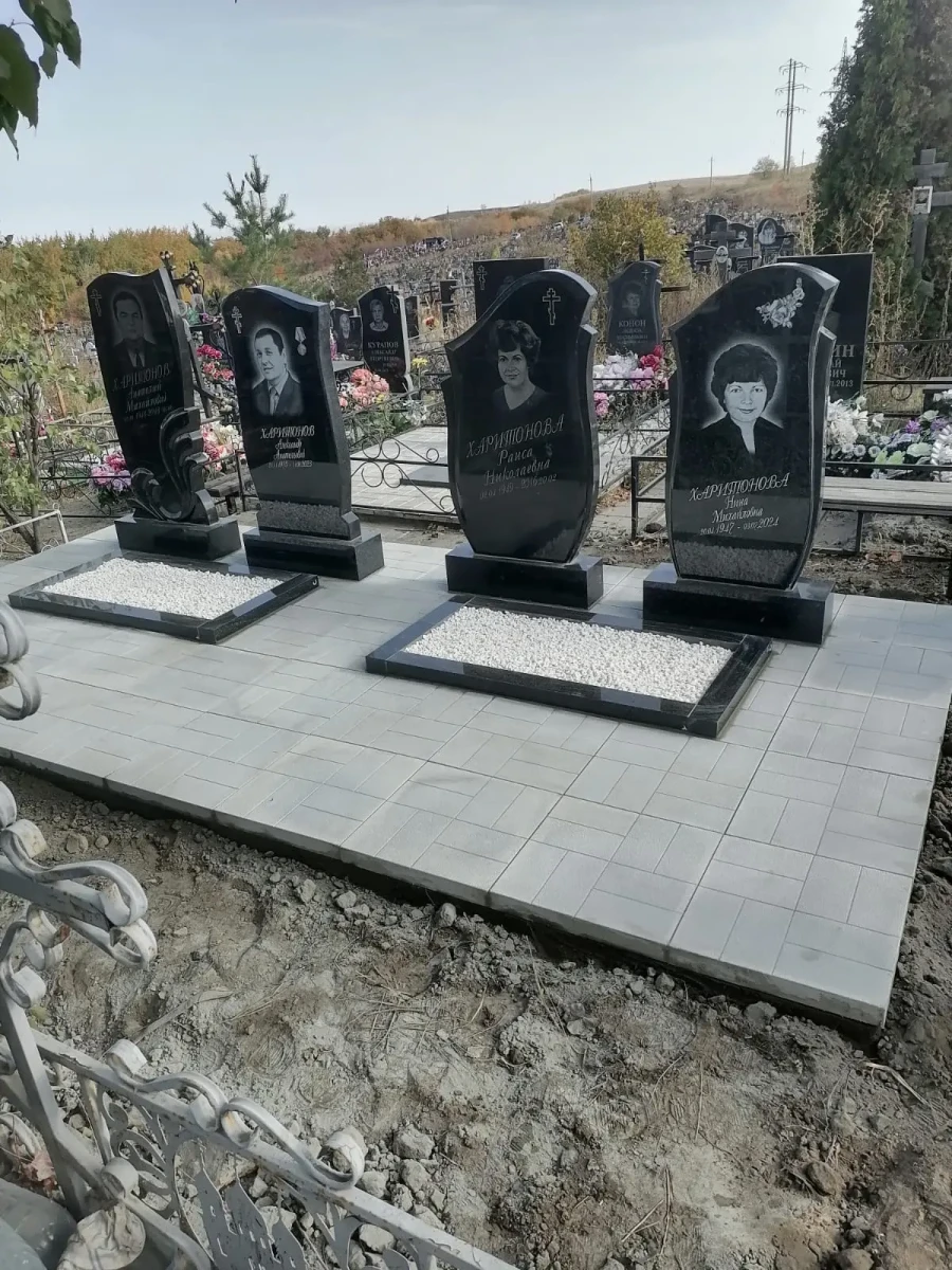Масштабный проект 2025 года, представляющий собой объединение четырех индивидуальных захоронений в целостный архитектурный ансамбль. Дизайн построен на принципе вариативного повтора: использование одного материала (Габбро-диабаза) и общей стилистики гравировки придает комплексу единство, в то время как разные силуэты стел подчеркивают индивидуальность каждого человека.
