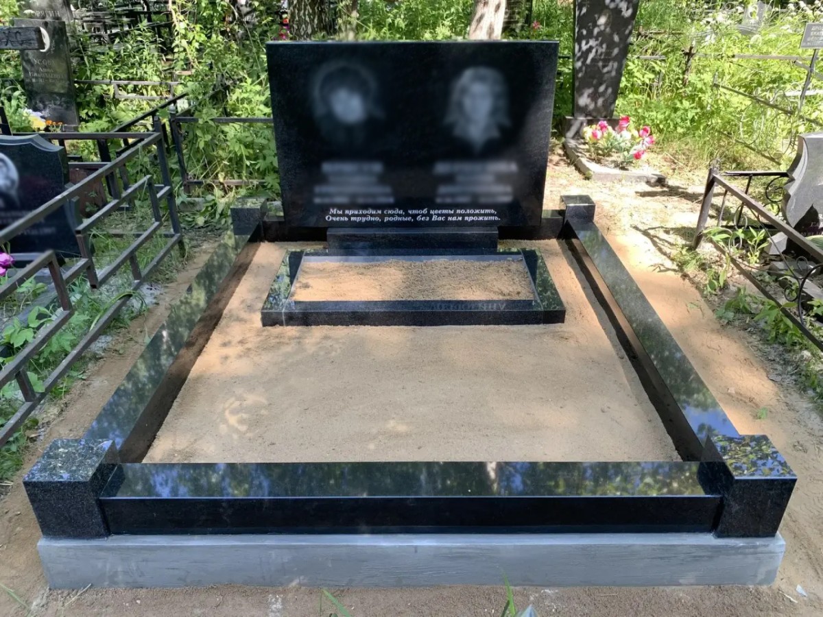 Лаконичный и основательный мемориальный комплекс для семейного (двойного) захоронения. Проект выполнен из классического карельского черного гранита (габбро-диабаза) с безупречной зеркальной полировкой. Прямоугольные, рубленые формы стелы и ограждения подчеркивают монументальность, строгость и достоинство мемориала.