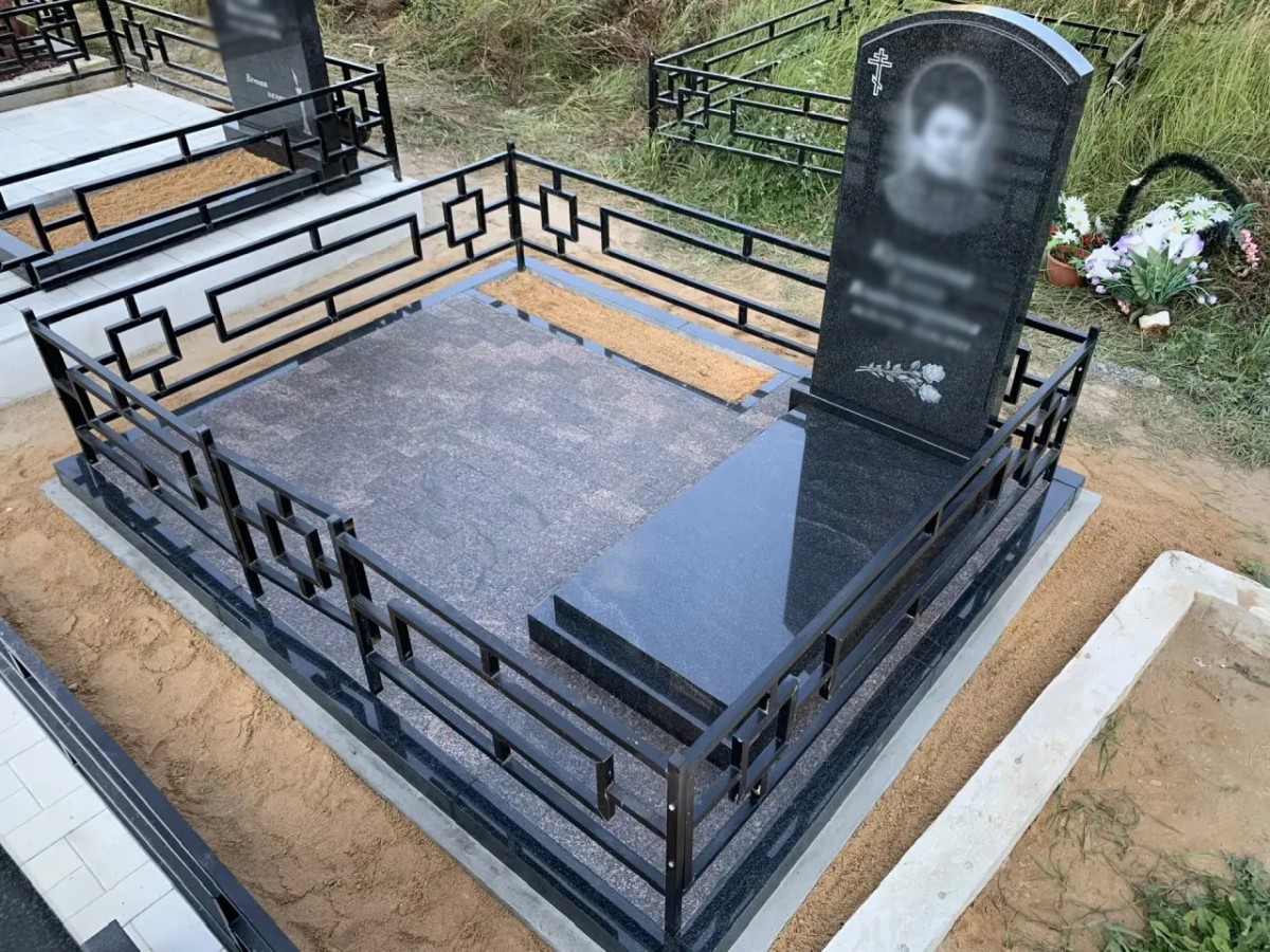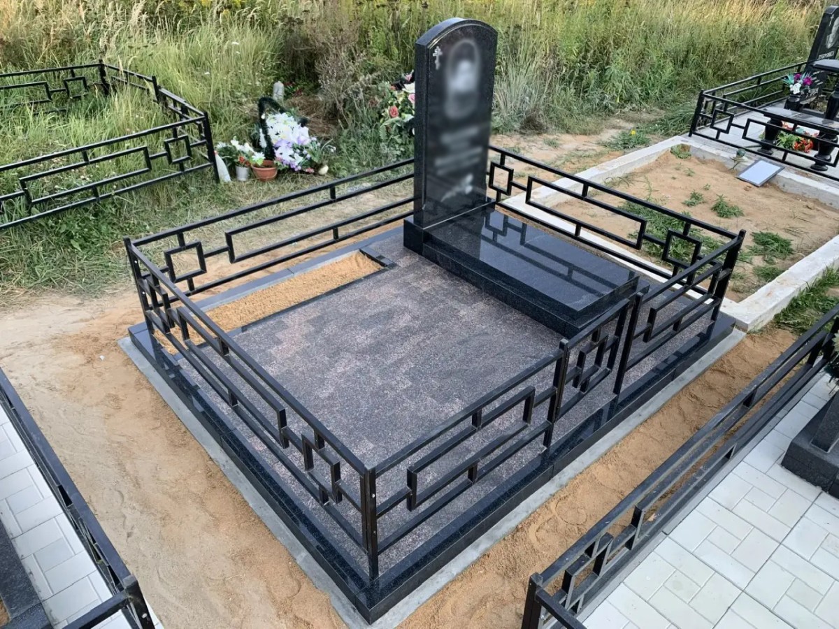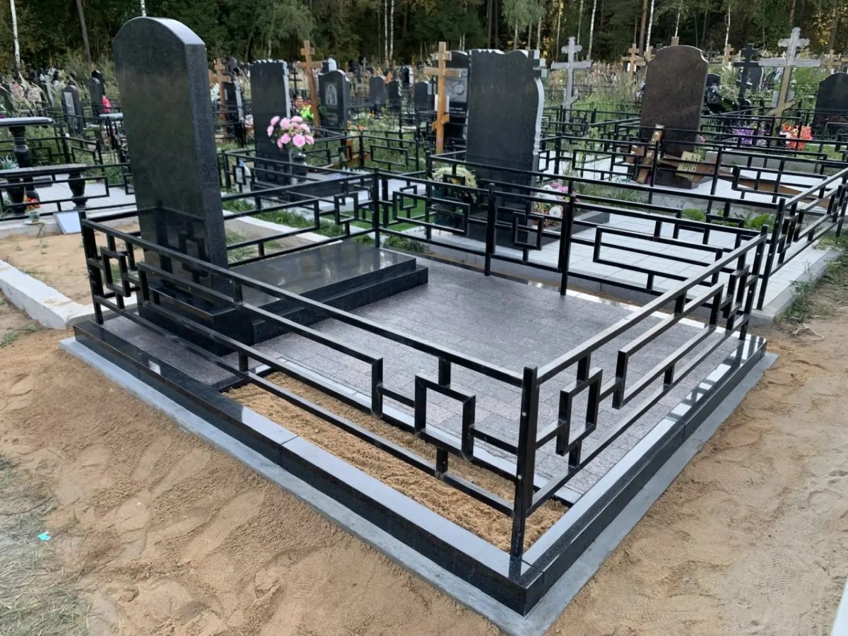 Этот комплекс является образцом практичного благоустройства: использование сплошной надгробной плиты и гранитного мощения сводит необходимость сезонного ухода к абсолютному минимуму, сохраняя при этом торжественный и опрятный вид захоронения на десятилетия.