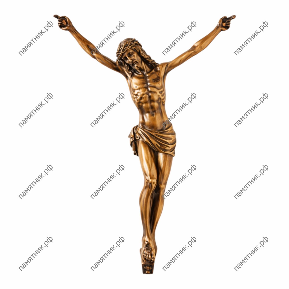 Классическая накладная фигура распятого Спасителя, предназначенная для монтажа на гранитный крест или поверхность стелы. Голова Христа в терновом венце покорно склонена, передавая момент свершившейся искупительной жертвы и обретенного покоя. Итальянские скульпторы Caggiati с потрясающей анатомической точностью проработали пластику тела и мягкие, естественные складки плащаницы (перизомы). Это изделие из премиальной бронзы наполнит мемориал глубочайшим духовным смыслом.