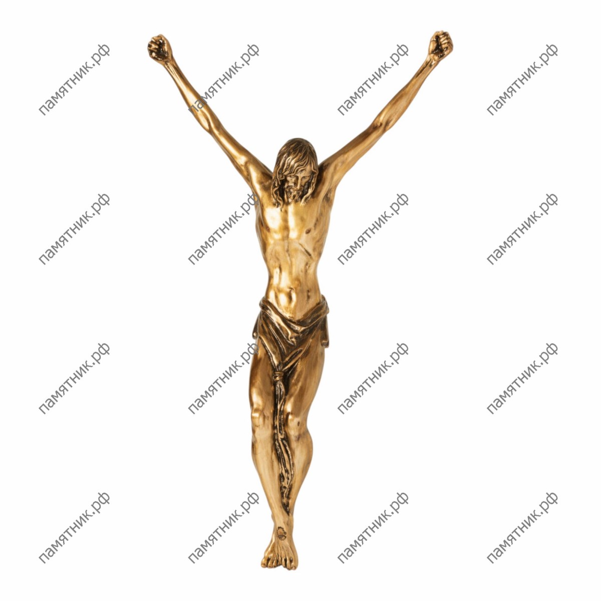 Масштабное и монументальное Распятие, созданное для статусных мемориальных комплексов. Фигура Христа поражает уровнем реализма: от филигранной проработки кистей рук и стоп до выражения лица, полного благородного спокойствия. Идеальная шлифовка и деликатное патинирование итальянской бронзы создают красивую игру света и тени, заставляя скульптуру выглядеть выразительно и торжественно на фоне темного полированного камня.