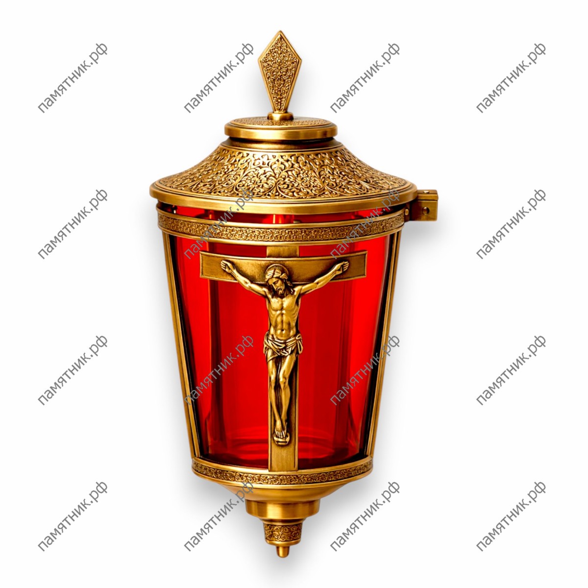 Классическая лампада с богатым художественным оформлением. Лицевая сторона украшена рельефным Распятием, а крышка и основание покрыты тонким растительным орнаментом в традиционном стиле. Красное стекло придает свету особую глубину и теплоту. Изделие создано всемирно известным брендом Caggiati. Настоящая итальянская бронза делает эту лампаду не только символом веры, но и исключительно долговечным элементом мемориала.