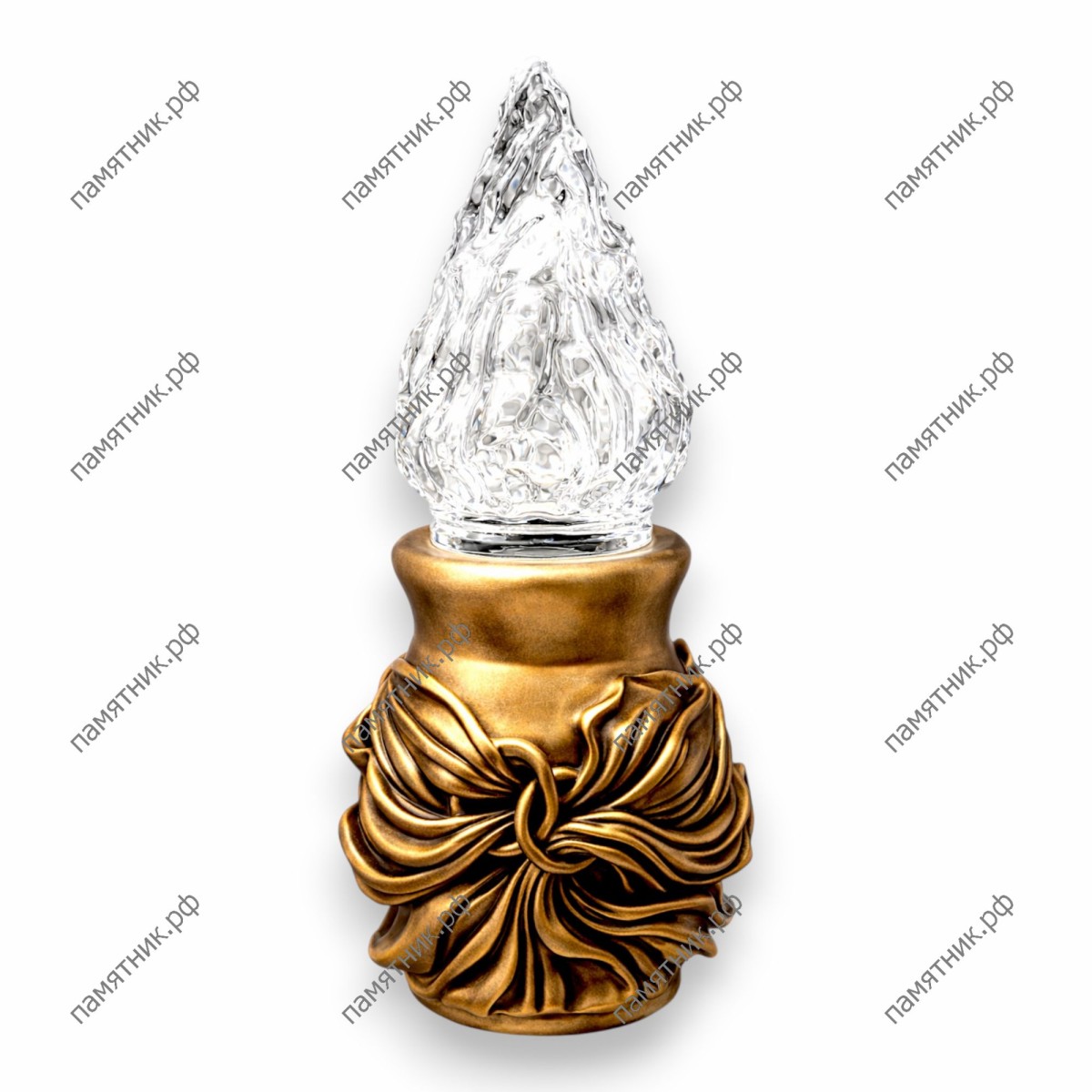 Сложная художественная модель. Основание лампады богато декорировано рельефом, искусно имитирующим ниспадающие складки ткани или завязанный узел. Стеклянный плафон имеет уникальную, "рваную" фактуру, напоминающую живое пламя или горный хрусталь. В основе этой роскоши лежит итальянская бронза Caggiati, гарантирующая мемориальному изделию исключительную долговечность и статусность.