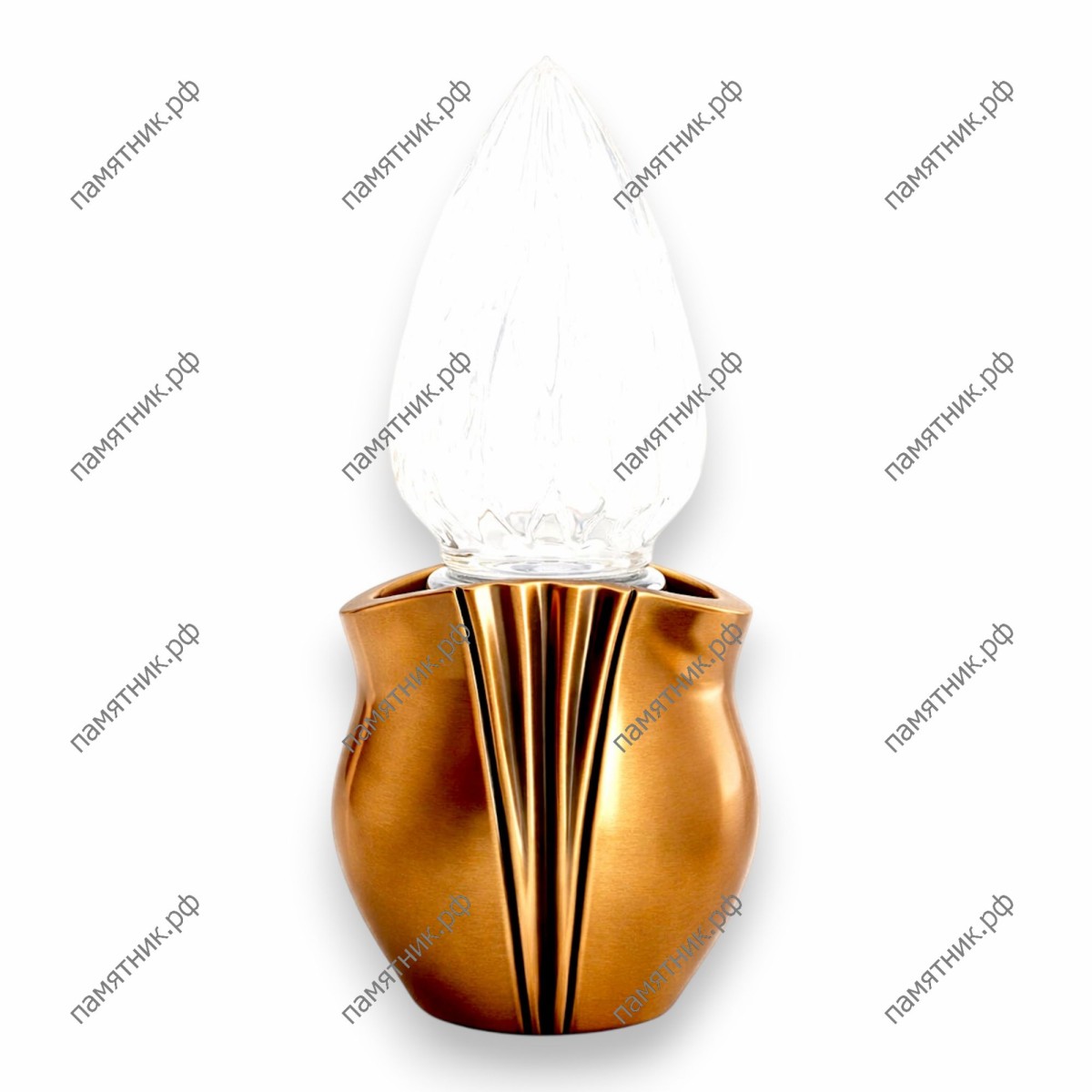 Стильная лампада, привлекающая внимание строгими вертикальными складками в центре чашеобразного основания. Эта деталь создает красивую игру теней на металле и придает изделию архитектурную выразительность. Дополняет композицию гладкий стеклянный плафон. Итальянская бронза от бренда Caggiati — это синоним безупречного качества, обеспечивающий лампаде вечную красоту и надежность в мемориальном ансамбле.