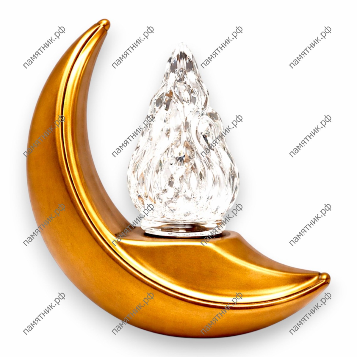 Уникальная лампада, основание которой выполнено в форме изящного полумесяца. В изгибе композиции располагается фактурный стеклянный плафон, чья форма и рельеф виртуозно имитируют трепещущее пламя. Такая модель станет выразительным и глубоко символичным элементом мемориала. Основа изделия — премиальная итальянская бронза Caggiati, невосприимчивая к коррозии и выгоранию на солнце.