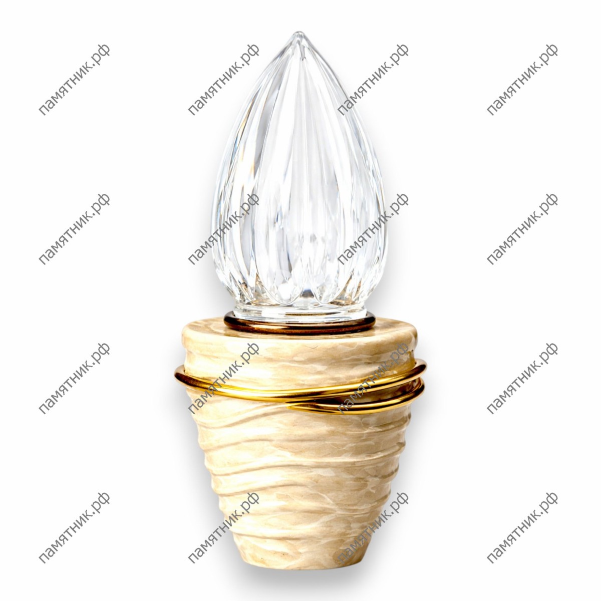 Светлая и воздушная лампада. Корпус светлого оттенка с волнообразным, струящимся рельефом изящно опоясан асимметричными кольцами из полированной золотистой бронзы. Композицию завершает классический граненый кристалл. Изделие от Caggiati демонстрирует виртуозное комбинирование материалов. Используемая итальянская бронза защищает ключевые элементы лампады от воздействий влаги и времени.