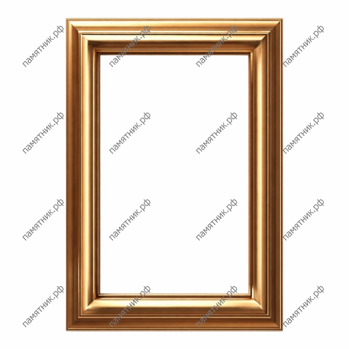 Абсолютная классика и ничего лишнего. Эта прямоугольная рамка выделяется идеально гладким, отполированным профилем без орнаментов. Ровные грани и прямые углы создают строгий, солидный контур для портрета. Такой минималистичный дизайн позволяет премиальной бронзе говорить самой за себя, красиво отражая свет и подчеркивая монументальность гранитной или мраморной стелы.