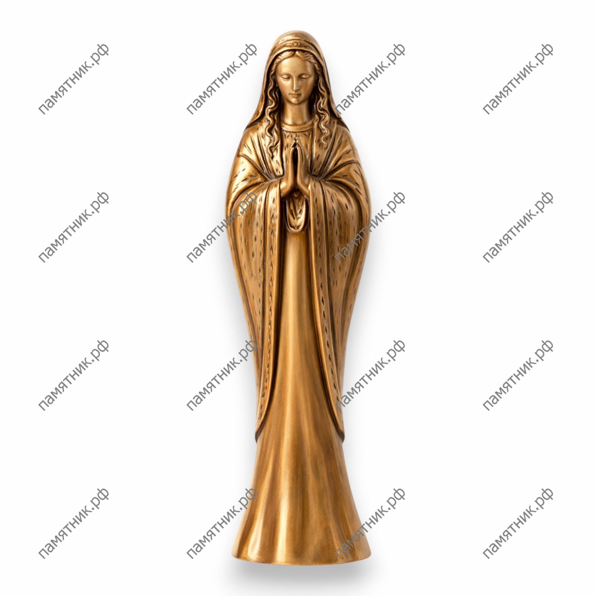 Утонченное воплощение абсолютной чистоты и непрестанной молитвы. Вытянутый, грациозный силуэт Девы Марии завораживает своей плавностью, отсылая к лучшим традициям возвышенного религиозного искусства. Ниспадающее одеяние, украшенное деликатным орнаментом по краю, создает ощущение невесомости и духовного парения. Идеальная гладкость премиального металла от фабрики Caggiati делает этот образ особенно трогательным и визуально безупречным.