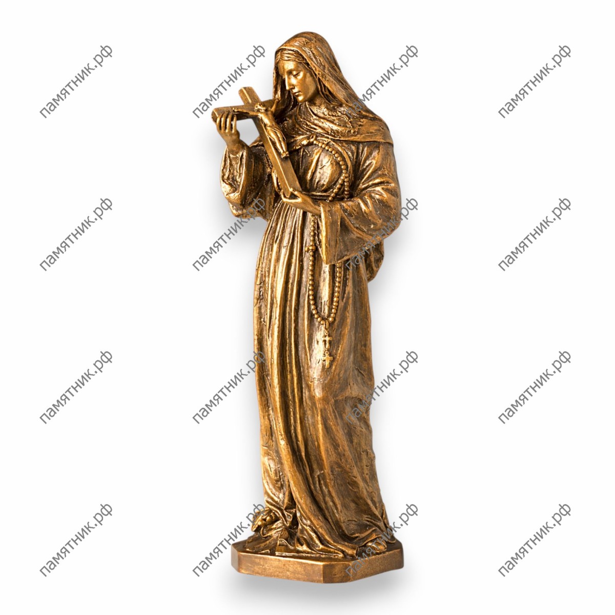 Пронзительный образ глубокой веры и благоговейного созерцания. Женская фигура, трепетно держащая в руках распятие, воплощает собой непрестанную молитву, безграничную преданность и духовное сострадание. Изящно спадающие четки-розарий служат символом вечной связи с Богом и светлой памяти об ушедших. Литейщикам фабрики Caggiati удалось с поразительной точностью передать задумчивый, погруженный в себя взгляд и тяжелые, реалистичные складки ниспадающего одеяния. Эта скульптура наполнит архитектуру мемориала атмосферой абсолютной тишины и молитвенного покоя.