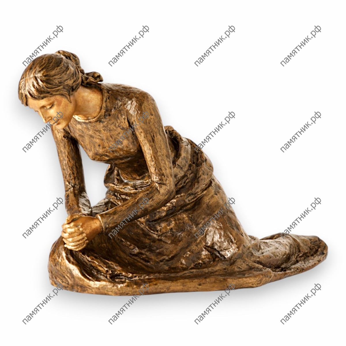 Скульптура, пронизанная чувством глубочайшей, молчаливой скорби. Коленопреклоненная дева, в бессилии опустившаяся на землю со сложенными руками, воплощает момент искреннего горя и прощания. Итальянским мастерам удалось передать фактуру грубой, измятой ткани платья, которая усиливает общую драматичность образа. Эта искренняя и печальная статуя без слов расскажет о силе вашей любви и тяжести утраты.