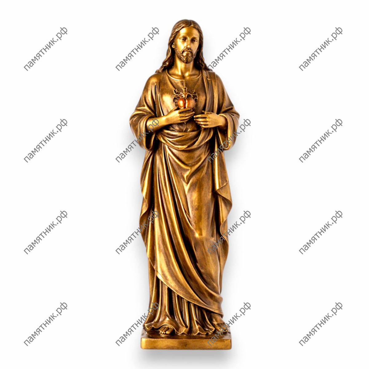Величественная фигура Иисуса Христа с пылающим Святым Сердцем — символ безграничного милосердия и божественной благодати. Скульптура отличается строгой симметрией и глубокой детализацией: каждая складка хитона выверена до миллиметра, создавая потрясающую игру света и тени на благородном металле. Этот монумент привнесет в архитектуру мемориала ощущение высшей справедливости, покоя и надежды на вечную жизнь.
