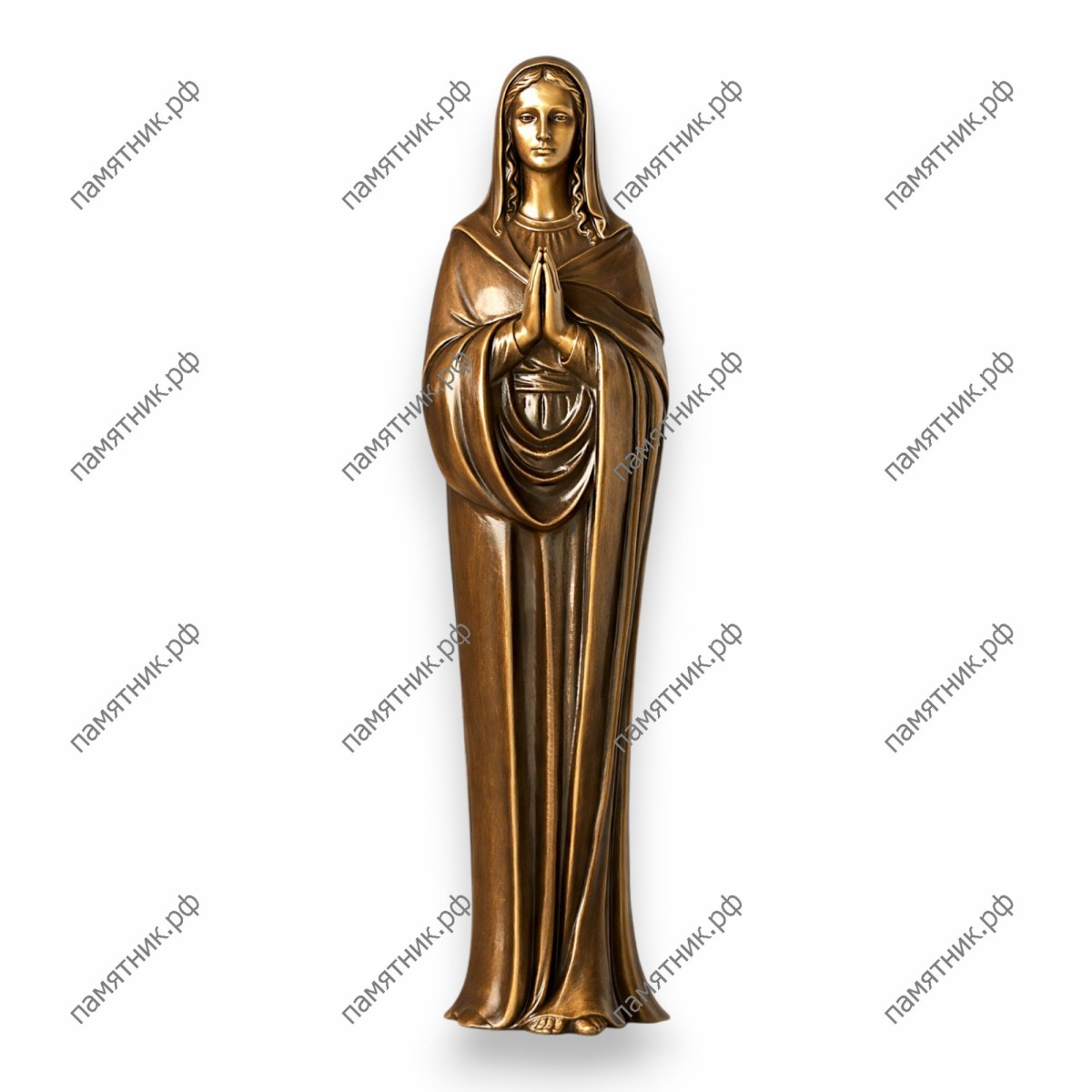Идеальная гармония лаконичных форм и глубокого духовного содержания. Молящаяся Дева Мария, окутанная строгим плащом, предстает как воплощение тишины, смирения и вечной защиты. Прямые, вертикально ниспадающие складки визуально вытягивают силуэт, придавая ему особую грацию и монументальность. Итальянская бронза высшей пробы делает этот эстетически выверенный образ поистине драгоценным.