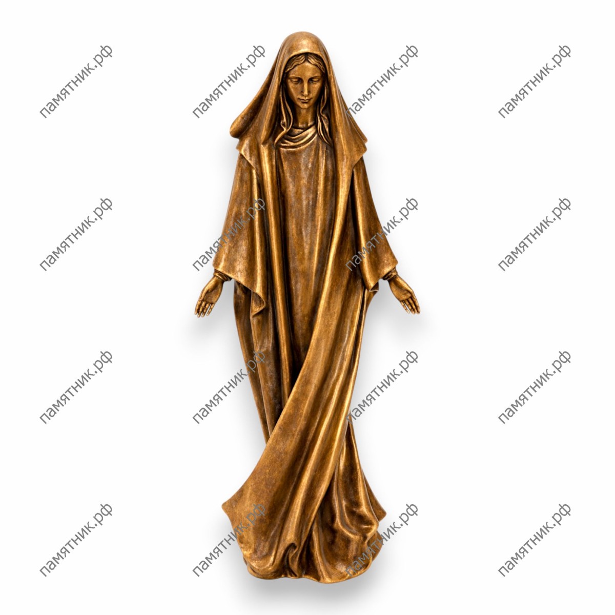 Светлый образ Милостивой Богоматери, дарующей божественную благодать. Слегка опущенные и раскрытые руки символизируют материнское всепрощение и готовность опекать усопших. Плавные, обтекаемые линии струящейся мантии создают эффект невесомости, словно фигура бесшумно парит над землей. Безупречное качество бронзы Caggiati гарантирует, что этот возвышенный и элегантный монумент пронесет свою эстетику сквозь десятилетия.