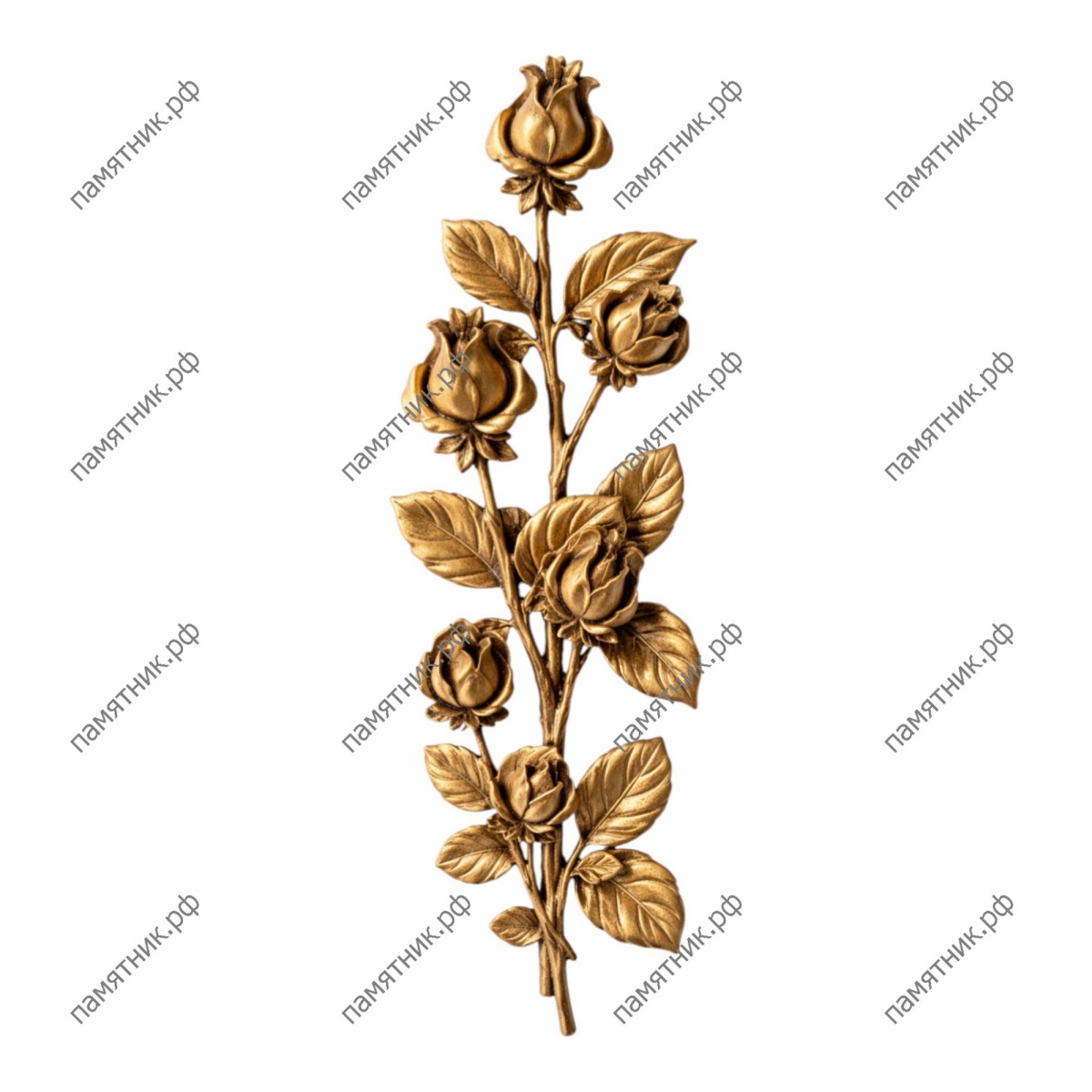 Роскошная бронзовая ветвь с двумя пышными розами. Раскидистая форма, динамичные изгибы стеблей и богатый рельеф листьев позволяют использовать этот элемент как выразительный акцент на широких гранитных стелах. Итальянские мастера Caggiati вложили в эту композицию идею вечного цветения и неувядающей, живой памяти. Благородная патина придает розам дополнительный объем и статусность.