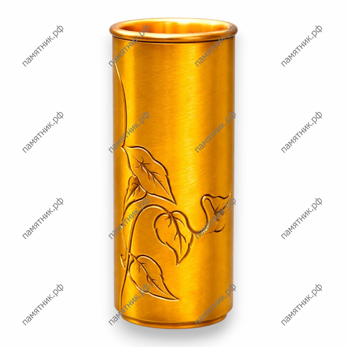 Строгая цилиндрическая ваза, смягченная нежным художественным оформлением. Гладкий корпус опоясывает тонкий барельеф в виде ветви с листьями, придающий композиции легкость. Изготовленная на фабрике Caggiati, эта модель сочетает в себе визуальную утонченность и механическую прочность. Итальянская бронза гарантирует длительный срок службы мемориального аксессуара без изменения цвета.