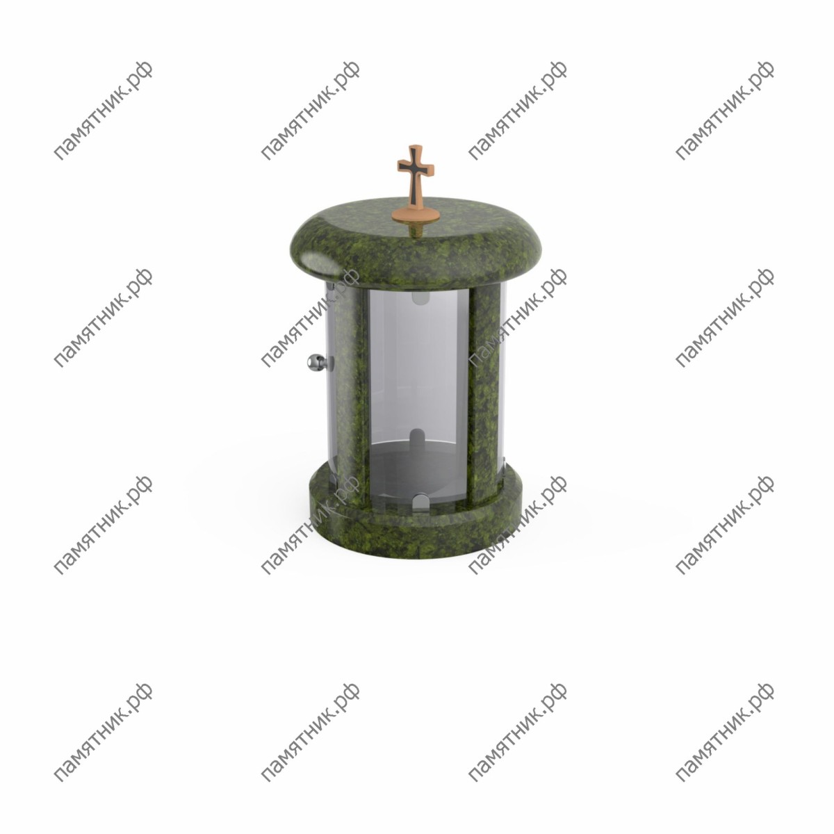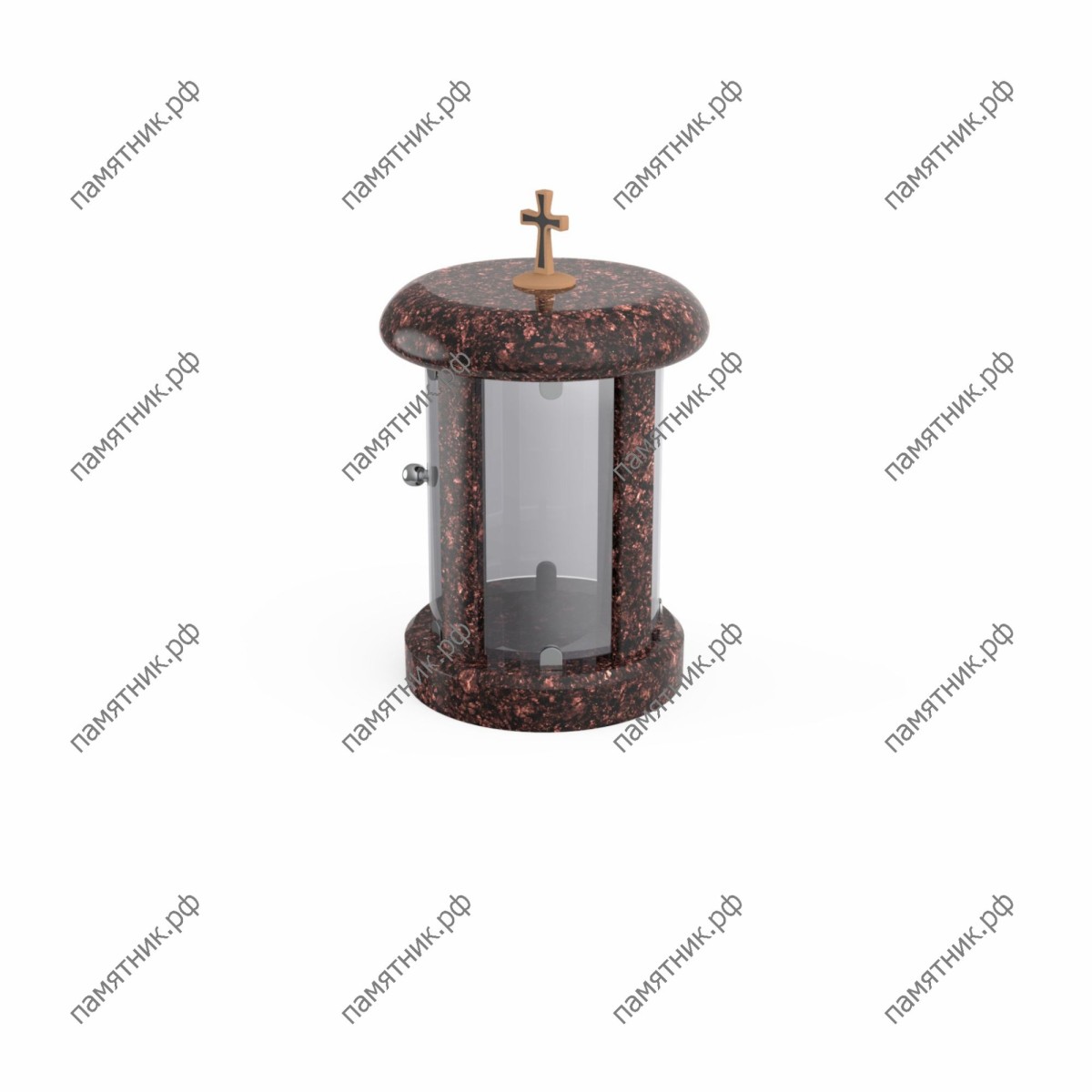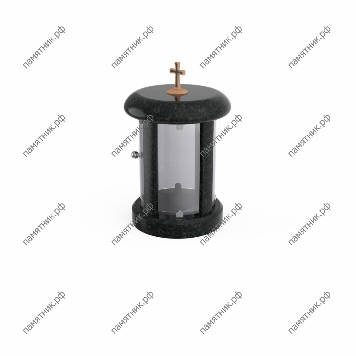 Практичность и элегантность. Модель ЛГ-3 по своему силуэту схожа с классической цилиндрической лампадой, но отличается повышенным удобством использования. Между круглыми основанием и крышкой из полированного темного гранита установлены прозрачные стеклянные стенки. Одна из секций выполнена в виде удобной открывающейся дверцы, снабженной аккуратной металлической ручкой (кнобом), что делает процесс зажжения или замены свечи максимально простым. Венчает композицию традиционный лаконичный крест.