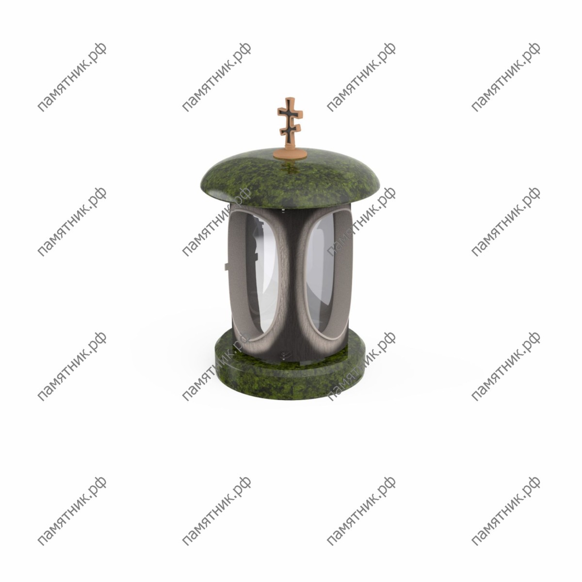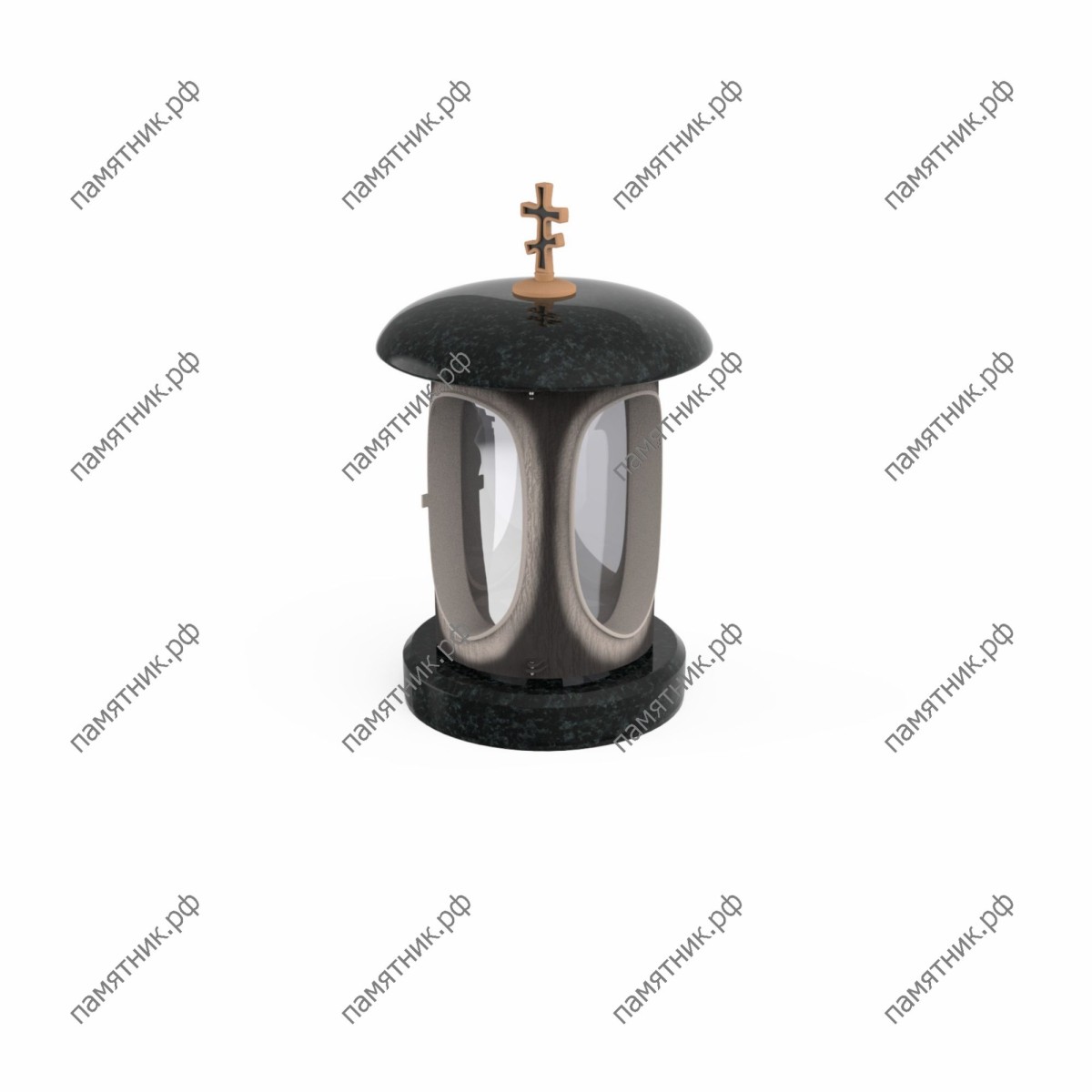Традиционная форма с православным крестом. Модель ЛГ-5 представляет собой гармоничное сочетание контрастных текстур и глубокого духовного символизма. Круглые гранитные элементы крышки и основания дополнены центральной частью мягкого серого оттенка с выразительными овальными стеклянными окнами. Главной отличительной чертой этой лампады является традиционный православный (восьмиконечный) крест на куполе. Эта деталь делает лампаду особенно значимым атрибутом для христианских захоронений.