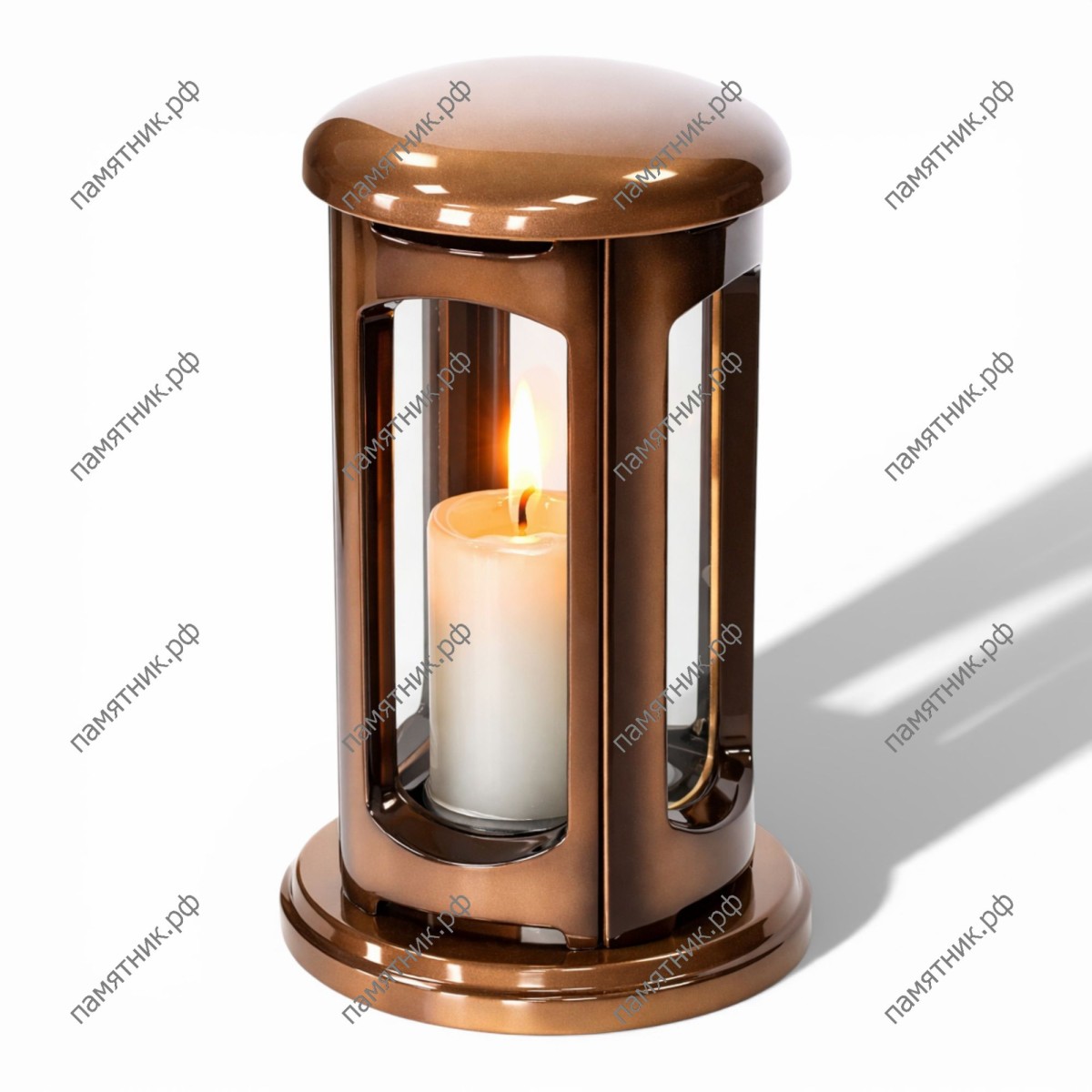 Изящный фонарь с перекрестиями. Лампада ЛП-8 выполнена в форме классического прямоугольного уличного фонарика. Ее особенностью являются декоративные перемычки на стеклах. Это стильное решение не только служит дополнительной защитой для стеклянных элементов, но и придает мемориальному комплексу атмосферу домашнего тепла, уюта и светлой памяти.
