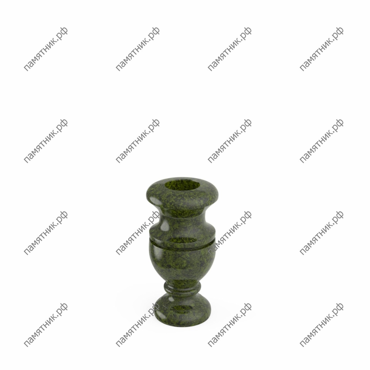 Форма античного кубка. Ваза ВЗ-13 привлекает внимание своими округлыми, мягкими очертаниями, напоминающими традиционный античный кубок. У нее широкое, пологое горлышко, переходящее в перехват, и выраженная шарообразная основная часть. Опирается ваза на невысокую, но надежную ножку с резным основанием. Эта модель выглядит очень уютно и эстетично, смягчая строгие линии гранитных памятников.