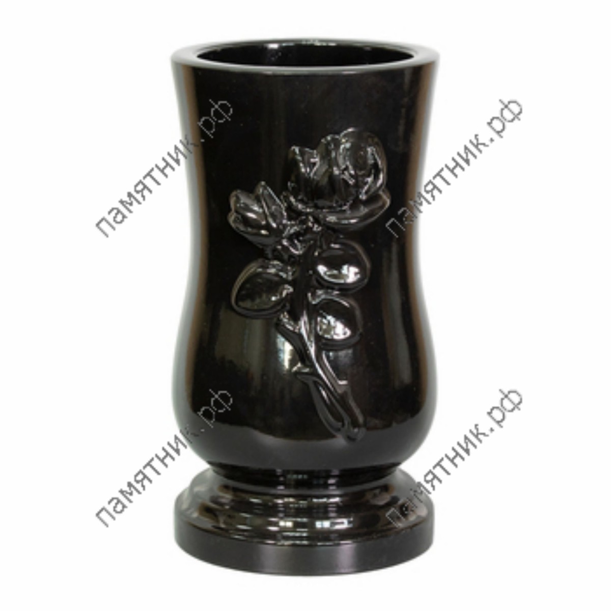 Утонченность с ветвью розы. В отличие от 15-й модели, ваза ВП-20 имеет более стройный, вытянутый и грациозный силуэт, напоминающий классический бутон цветка. Лицевая часть украшена детализированным барельефом в виде длинной ветви розы с листьями и бутоном. Модель выглядит невероятно нежно и символично, идеально дополняя светлые и женские мемориалы.