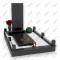 Описание: Строгий и лаконичный современный мемориал. Высокая вертикальная стела дополнена горизонтальной надгробной плитой, на которой закреплена изящная объемная ветвь роз из золотистого металла.