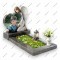 Описание: Классический мемориальный комплекс со скульптурой ангела. Скорбящая фигура ангела бережно обнимает сердце из темного гранита, внутри которого размещен портрет мальчика.