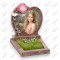 Описание: Сердцевидная стела из насыщенного красного гранита. В верхнем левом углу расположена крупная 3D-скульптура розового цветка с зелеными листьями и белой бабочкой.