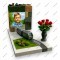 Особенности: На широком светло-сером основании проложена изогнутая колея, по которой едет объемный черный игрушечный локомотив с вагоном. В левой части основания обустроен квадратный цветник с зеленой травой и кустиками, а справа стоит черная ваза с красными розами.