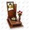 Особенности: Основание многоярусное, выполнено из красно-коричневого гранита с черными боковыми вставками. В центре закрытого надгробия обустроен небольшой ромбовидный цветник с белыми маргаритками. Слева у портрета лежит одна красная роза, а справа на постаменте установлена ваза в тон памятника с букетом красных роз.