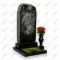 Особенности: Основание представляет собой строгий прямоугольный цветник из черного полированного гранита. Внутри на зеленом газоне высажен небольшой кустик нежно-розовых цветов. Справа от стелы на отдельном постаменте стоит черная ваза с красными розами.