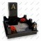 Описание: Строгая и лаконичная архитектурная композиция. Стела, как и в модели ДП-52, состоит из составленных друг на друга массивных черных гранитных кубов. На верхнем блоке закреплена крупная золотая буква "А".