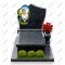 Особенности: Мемориал имеет массивное закрытое основание — широкую надгробную плиту из темно-серого гранита. Перед основной плитой находится ступень с прямоугольным вырезом-цветником, в котором на газоне высажены три круглых зеленых кустика. Справа на основании установлена ваза из черного гранита с букетом красных роз.