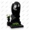 Особенности: Классическое основание из черного гранита с открытым прямоугольным цветником. В цветнике на искусственном зеленом газоне высажен пышный куст с розовыми цветами. Слева на подставке установлена изящная черная фигурная ваза с букетом белых роз.